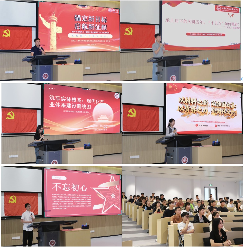 哈尔滨工业大学(深圳)前沿学部材料日本五级片硕士第三党支部书记董鹏飞同志回顾了“十四五”时期我国发展取得的重大成就,并介绍了“十五五”时期经济社会发展主要目标。