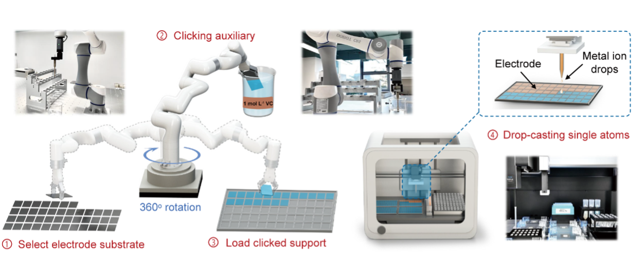 图2. 机器人驱动的面向电催化的单原子催化剂合成路线示意图
