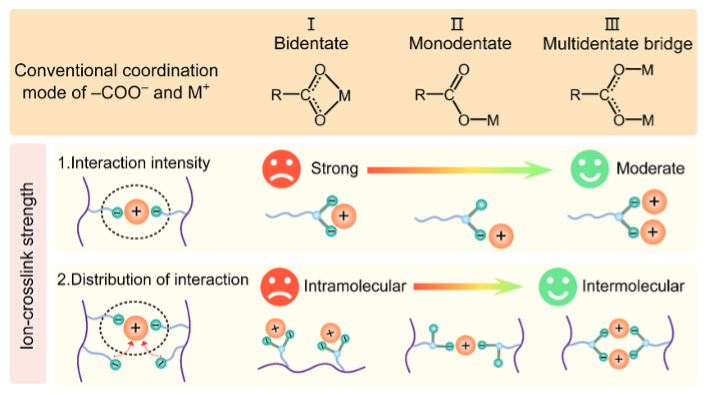 导电型粘结剂为其提供了极具前景的解决路径。但该材料固有的低分子量与有限的力学性能,迫使其必须引入可逆的分子间相互作用,以构筑稳定而动态可调的交联网络。在众多相互作用中,以金属离子为交联中心的配位键兼具适中的键能与可逆性。相较于刚性的共价键和较弱的氢键,它能在结构完整性与动态重构之间实现有效平衡,更有利于缓冲硅颗粒大幅体积膨胀与收缩。然而,如何基于配位作用构建这种自适应粘结网络,其内在调控机制仍有待深入阐明。