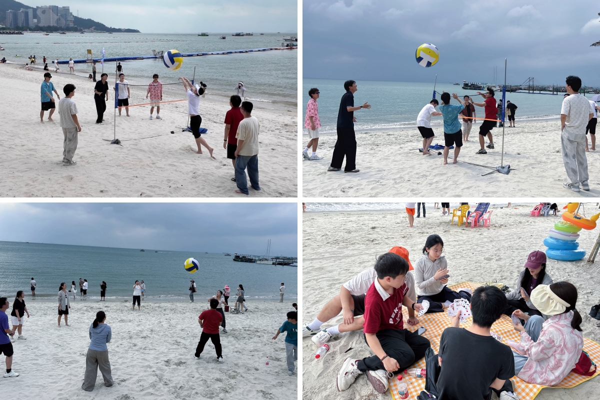 终点站是巽寮湾沙滩:有人组队打起沙滩排球;有人围坐着玩桌游;有人沙滩漫步;也有人静坐岸边,倾听海浪的声音,慢慢放松科研时的紧张状态。光影、海浪、奔跑的身影,共同构成了一幅自带BGM的春日出逃图。